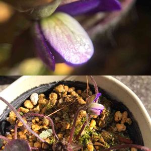 雪割草^_^ピンク色の小さな蕾が開きそうです😅 繊細過ぎてポットのままです😅