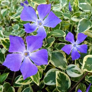 🏷(祝)チーム・ブルー1周年 青紫色の斑入り葉ツルニチニチソウの花が沢山咲いて綺麗です💕