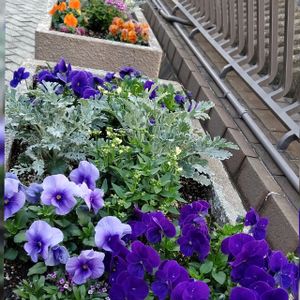 おはようございます😃 職場のビルの前の広場の花壇です。 💜成長を考えて、隙間を開けて植え付けられています😃 💜だんだん暖かくなって来たら、モリモリ、ギュウギュウになるのでしょうね😃