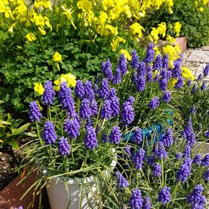 ムスカリ💜 オオキバナカタバミ💛 もう満開🥰🤗💜💜 幸せ😃💕 💜地植えで、長年植えっぱなしでしたので、葉は長く、花付きも悪くなっていたので、 一昨年、思いきって掘り起こし、鉢やプランターに植え替えました😃 💜昨年に続いて、今年もたくさん元気よく咲いてくれました🤗 💜来年も咲いてくれるように、花後のお世話もしっかりしますね😃 💜💜💜💜 (祝)チーム・ブルー1周年 おめでとうございます😃 大好き💜💙💜💙💕 これからもよろしくお願いします🙇♀️⤵️