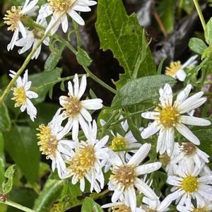 雨の丘陵地☔ そこ一帯に広がって 野菊が咲いていました。 多分ヨメナ🤍💛💚 霞丘陵