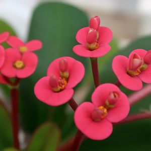 10月6日 今日のお花『ハナキリン』です。 【ハナキリン(花麒麟)】 マダガスカル原産、トウダイグサ科の低木。 茎に鋭いトゲがある多肉植物。 葉っぱが色づいた苞が、花のように赤、橙、黄、白などに着色する。 切ると出る乳液は独特の臭いがして有毒。 草丈:20cm~120cm 花色:赤、ピンク、白、黄、橙色など 開花時期:3月~12月 下関市園芸センターにて