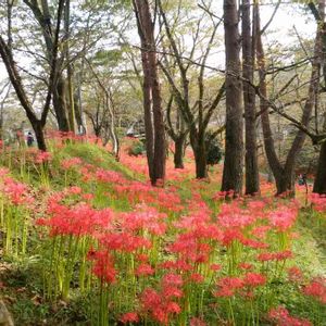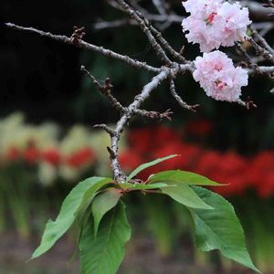 今年は寂しい思いをした桜の木の合間に鮮やかな紅色。来年の春は思いっきりお花見したいね。