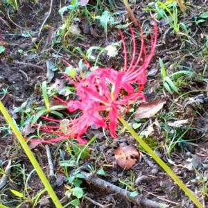 2019.05 妹宅の斜面に花畑になるように 植えてた彼岸花の球根 全然咲かず不発と思ったら、1輪だけ。。。 除草し過ぎたんですよね… 滅びの呪文で砂利になっちゃって、崩れて 大変に。 いろいろ考えよう。