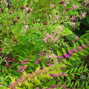 ムラサキシキブに近づいて行ったら萩やワレモコウなど数種類の花達が見られて風情を感じました。 北杜市 ひまわり市場