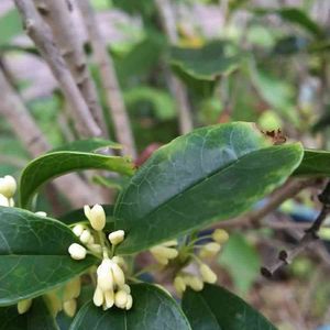 ギンモクセイ✨ フワッといい匂いに惹かれて発見! ギンモクセイ 花がつきはじめました✨ 秋の匂い~💕 キンモクセイもあるけど…まだまだ花がついてません💦