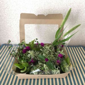 🌿🙂お世話になってる方へ💕🌿 お花ギフト🎁 ほぼ野草 スカーフが入っていた箱 コンビニの紙コップ