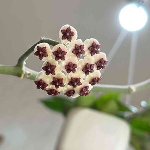 ハートホヤ(ホヤ ケリー) ハート形の葉っぱのホヤです。 挿し木していたチビ苗が今朝咲いている事に気付きました☺️ 葉の裏に蕾があったらしく、見つけた時はすでに蜜がすごいことに‼️🤣