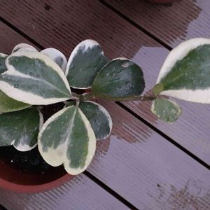 ハートホヤ♡ 斑入りのハートが伸びて ハートが増えてます… ハート型の葉が可愛らしいけどお花は咲かないのかしら⁉… 🏷️錦の日