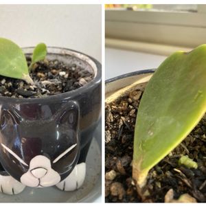 100均ワッツで狩りました😊 バレンタインセールの残り物かな😅 他の苗は黄緑っぽくて、この子だけ緑でした。 植え替えたら、根っこがしっかり出てました👍 ハートホヤを調べたら、こうして売られているものは、成長点が付いている葉はほとんどない😱とのこと。 え⁉️ 挿してあるだけ❓ 根っこが出てたのは当たりくじだったのかしらん🤔 芽が伸びてくれるといいなぁ☺️ 花が見られたらいいなぁ😆