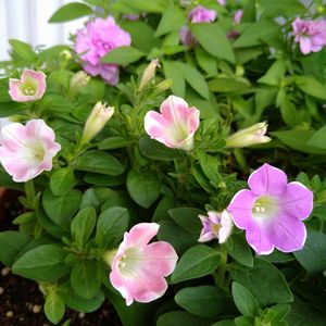 ペチュニア系を育てるのが苦手なのですが、涼しくなってきて今が一番綺麗✨かも いちごシェイクは去年の生き残りです♪