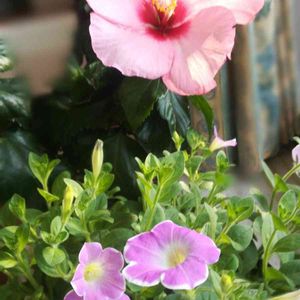 おはようございます✨ 今朝のハイビスカス🌺 サフィニアアート いちごシェイク🍓 お部屋の中でまだ頑張って 咲いてくれています❣️