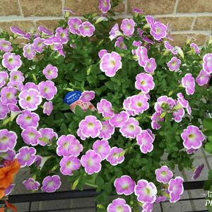 こんにちは☀️ 朝からセミの大合唱💦 何dBあるかな🧏♀️🔊 スーパーベナ アイストゥインクル (2年目)と サフィニアアート いちごシェイク🍓 6月に切り戻ししてから、 やっと咲いてきました😊💕 猛暑の中、頑張っています🎶