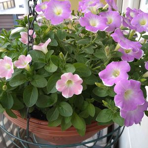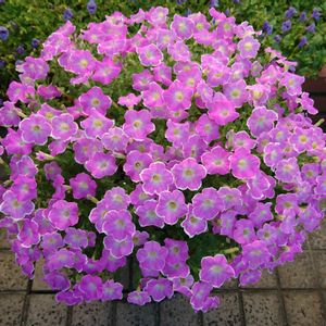 サントリーフラワーズ サフィニア アート いちごシェイク ほぼほぼ満開になりまん丸に咲いてくれました🍓 今の時期花色が綺麗です💗