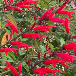 今日も寒いです〜😵 いつ植えたか忘れてた椿さん❤️ 普通の赤では無かったと思うんだけど…🤔 花が1個付いてる〜😆って覗いたら、変な形で 蕊の凄さにビックリ⁉️ ほぼ実物大です💦