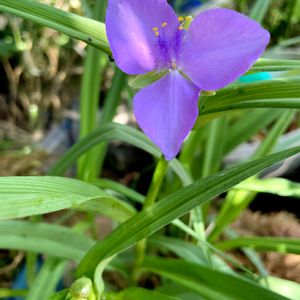 ご近所さんの畑の隅で ひっそりと咲く紫露草 若草色と紫のコントラストが 綺麗です👀 やっぱり、素朴な花はいいね👌