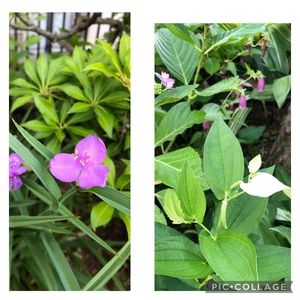 おはようございます☂️ 朝からあいにくのお天気なので、庭のムラサキツユクサと半夏生を投稿します🤗