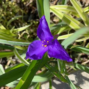 今まで庭で全く見た事がなかったのに花壇の端っこで発見しました。 ムラサキツユクサ…で合ってますよね?