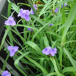 紫露草❣️露草より一回り大きく葉もしゅっと長いです、1日花ですが次から次と毎日咲いています。雨の日は長く開いていて可愛いです💕