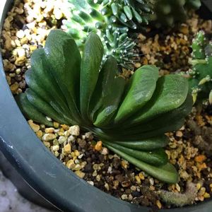ハオルチアだと思うけど、名札を紛失。葉が外だと赤茶色(左上みたい)になり、室内だと緑になります。 ハオルチアだとしたら、成長はかなり早いです。この鉢も十一月に葉が一、二枚でポツポツ間隔で植えたのに、もう4、5枚になってます。