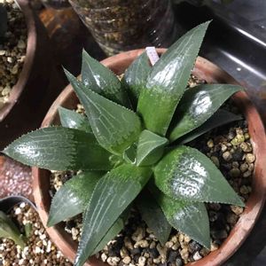 ハオルチア ピグマエア?交配種? ホームセンターで300円です。これが300円とは…安くなったものですね、価格低下はなんか残念な感じもあります🙄 タグに生産者情報が全くありません、何かご存知の方いらっしゃいましたら教えて欲しいです😯 他にもベノーサ、寿、シンビフォルミスの同じくらいの立派なサイズが300円でした