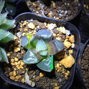 ハオルチア 瑠璃殿。 地下茎で増える。右上ひょっこり出てきた。