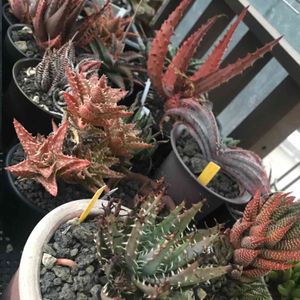 こんにちは。 ハオルチアさん達です。 奥の子は何さんなのでしょう? ホームセンターコメリからお連れしたのですが、ハオルチアとしか書いてありませんでした😓