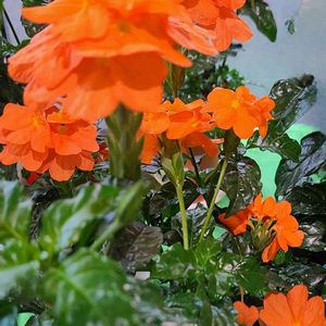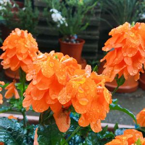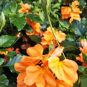 こんにちは👋😃 今日は朝は☔️が降りましたが止んで暑くなりましたよ☀️🌈 ベランダでクロサンドラの花が咲いて綺麗です🧡🌸🧡🌸🧡🌸 600枚です