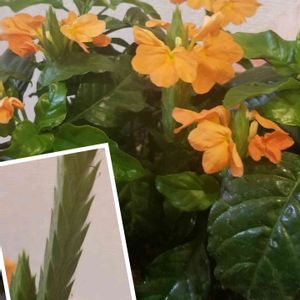 おはようございます☺️ クロサンドラ スーパーキャンドル💛 室内で春~夏🏄️☀️🍧を待ってます🎵 早くも小さなキャンドルを灯してくれました゚+.゚*´゚+.゚ 左下は、去年11月のものです😃