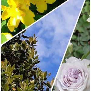 朝散歩 新芽の黄色が青空に 映えて綺麗です、 今日はことのほか 空が高かった❤ 満開のせんだんの花と。