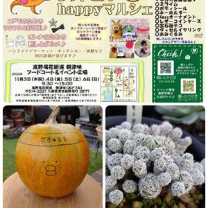 次回マルシェのお知らせです 津市高野尾【朝津味】さんで 晴レルヤマルシェPresents⭐️ レッドヒルhappyマルシェ が11月3日~4日間開催されます! さきゅまるは5日【土曜日】 参加決定いたしました! 申し込みが遅かったので広告など 掲載が間に合あわなかった(^_^ゞ 会場は屋根付きです! ミニ寄せ植えワークショップと、 事前に作った寄せ植えの 販売をさせていただこうかな? と思っています。 月曜日マルシェ 火曜日奈良へ旅に出て(毎度毎度オーバーな書き方やな(笑)) 水曜日朝からバイトで昼から片付け ふらふら(笑) 自分で予定組む事も出来るんやで もうちょい考えさ!て 突っ込みながら黙々と動いてたんだけど、 時々 ハロウィンさきゅまるが視界に写る。 マルシェの時カボチャをいただき、 (種を食べるカボチャらしいです) 飾らせてもらいました。 娘が、 顔とか書いたらいいのにって言うので、書いてええよ?ゆうたら 機嫌よく書いてくれたんだけど、 普通ここは、 コウモリ?のガハハって笑ってる? 怖い顔とか書くんじゃないのか? と心の中で思いつつ 昨日も見て笑ってました。 癒される。 銀手鞠 コロコロってして可愛いね でも触るの怖いから、 ピンセットでつついて 取れたのを違うポットに並べた(笑) 怖がりすぎですか?