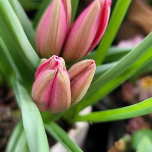 ミニチューリップ🌷 もうすぐパッカリと開くはず 一緒に植えたムスカリはまだのようです あらまぁ🤭 今年は球根たちの寄せ植えはそんなのばっかりでバラバラに咲いてしまう… それもまた楽しいけどね🤗