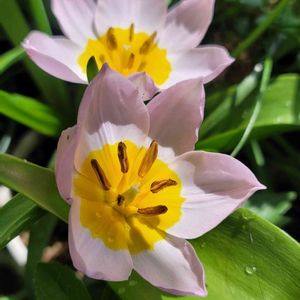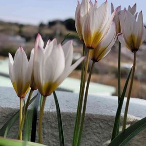 原種系チューリップ🌷 花弁の先にすこーしピンクが乗ってる💗 原種系の中では中ぐらいの高さで咲いてます✨