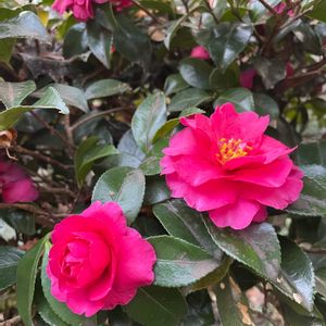 サザンカの花が、咲いています🌸 陽射しは、春の様なのに雪がチラチラしてます☺️
