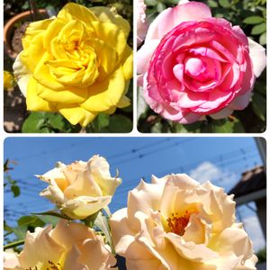 おはようございます🙋 朝からジリジリ暑いですね🍧😵🌀 🌹ファルツアーゴールド 🌹ピエール・ドゥ・ロンサール 🌹ロココ 暑いのに偉いね🌹