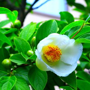 ナツツバキ(夏椿) ツバキ科ナツツバキ属の落葉高木 花言葉「はかない美しさ」「愛らしさ」