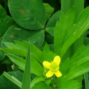 薮の下の方には 赤い実がチラチラ見えます🍓 黄色い花が1つ咲いていました ヘビイチゴでしょうか😊 山沿い散歩