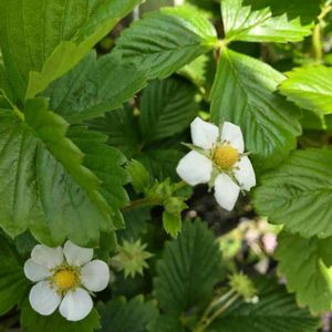 ヘビイチゴ 蛇苺 バラ科キジムシロ属 多年草 おはようございます 5/2に小さな小さなヘビイチゴが花から実になろうとしていました💛🔴 えっ これヘビイチゴなの❓と思うほど小さかったんです💛🔴💚 2枚目もです💛🔴💚 土地が痩せてるだけなのかな💛🔴💚 今日、GSでヒメヘビイチゴというのを知りました💕 葯がチャームポイントと書いてありましたが、こちらはもう実になりかけてます😅💛🔴