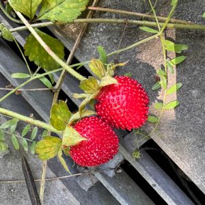 近所のガレージの片隅で、ヘビイチゴを見かけました。鳥が種を運んでくるのでしようか。 可愛い🩷