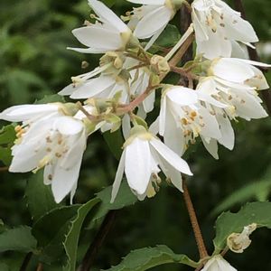 道路沿いの草村にて、白色が鮮やかなお花「ウツギ」をパチリ!📸🤍🌿😄🤗🌞✌️ 近くに真っ赤な「ヘビイチゴ」ができていました。🍓🌿😋