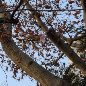 散歩の途中で 河津桜が一輪だけ咲いていました。