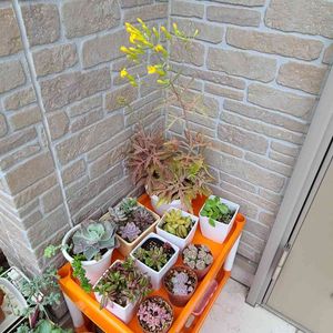 雨も上がり薄日が射しています。 昨日、雨が降るまでにと 室内組の多肉さん 全部外に出しました。 植え替えする時間は無かったので次回に・・・