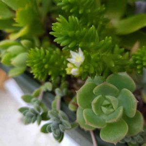 こんばんは~🎵 夕方帰宅すると 寄せ植えの鉢のなかに小さな花を見つけました❤️ 我が家に来てから初めての開花で~す。