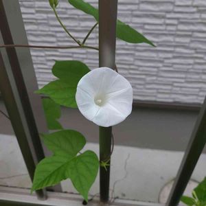 朝顔が咲いています。 こぼれ種から毎年! 少し小さい花ですが 清楚🤍🤍