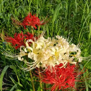 ♡今日のお花♡ 彼岸花です。 過去の写真です🎵 赤と白が、まざりあって咲いているのはとても綺麗です❤️ 先日見に行きましたら 草ぼうぼうで探せませんでした。 道路公団さん、災害が多くて忙しいのかなあー⁉️