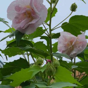お早うございます🎵 この花は? 八重のムクゲで良いのでしょうか? 近くのお家のフェンス際に綺麗に咲いていました。 フヨウと教えていただきました。❤️ 八重のフヨウは優しい花ですね~❤️