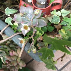 🌱アイビーと同居中の朧月さん、わがやでも花をつけました⭐️ 気づくと成長していてくれて嬉しい💚安定の存在🍀😊