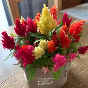 ケイトウ きものmix おはようございます☀ 先日お迎えしたケイトウ…。 へデラとクローバーも一緒に寄せ植えにしたのですが、ギューギューで抜いてしまいました。 なので単独で。 モリモリになると良いなぁ〜💕 カラフルでポップな姿…これから暫く楽しめそうです。 良い一日をお過ごし下さいね〜🍀