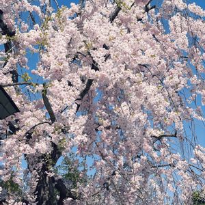 我が家の紅枝垂れ桜がほぼ満開になりました🌸🌸 紅枝垂れ桜は蕾のときは濃いピンクで咲いたら淡いピンクになります。 平安神宮の神苑もこの桜で有名です😆💕