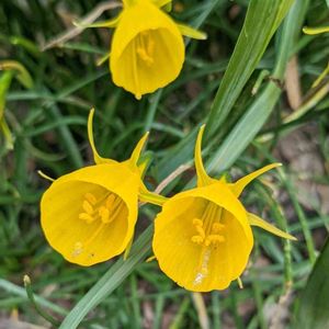 ナルキッスス・バルボコディウム(ペチコート水仙・ゴールデンベル) 秋に球根を植え、楽しみにしていたのですが、花がつきませんでした。がっかり過ぎて、咲いている株をまた買ってしまった😅